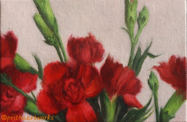Red Carnations; 8 inches diameter; 2023